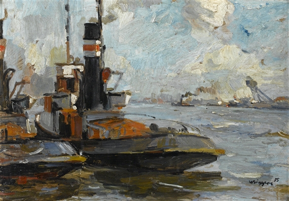 In 1956, he lost an eye during an operation, increasingly blinded until he was completely blinded in 1968. During this time, the forms and motifs of his works were increasingly coarsened. Already in the 1920s and then again from 1950 he had dealt with woodcuts and etchings, but mainly painted in impressionist style, even in small-format works. His subject was often the Port of Hamburg, which earned him the epithet “port painter”, also industrial landscapes and landscape painting in oil and watercolor.