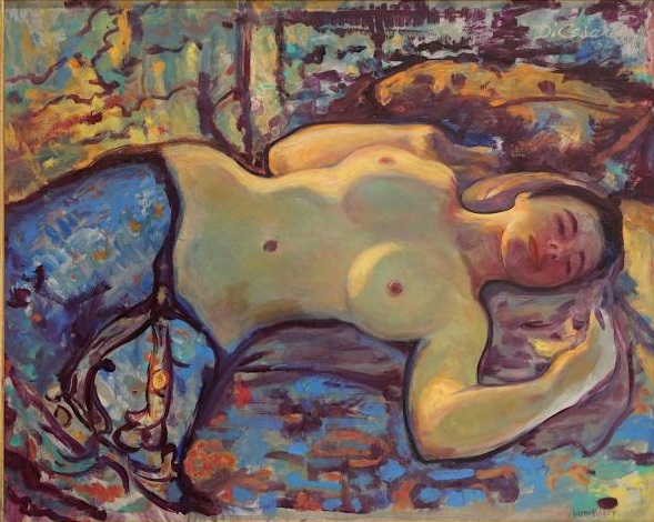 Alfred Di Cesare was born in Boston, Massachusetts in 1910. At fourteen he suffered an injury playing football and spent two months in a hospital on bed rest, it was during this time that he began to sketch pencil portraits of the doctors. His family doctor encouraged Di Cesare’s father to enroll his son in the School of Practical Arts. Through connections at the school the artist began working for the Donnelly Advertising Company making original layouts for hand-painted billboards. On a lunch break one day he attended an exhibition of paintings by Boston artists and was impressed by a work by Ernest Lee Major (American, 1864-1950) and immediately sought him out as a teacher. After studying with Major, Di Cesare became Major’s studio assistant for ten years at the Massachusetts Normal Art School, now the Massachusetts School of Art and Design. More on Alfred Di Cesare