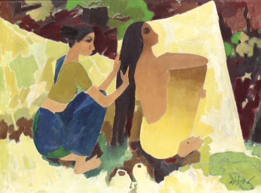 This resulted in works like Sunflowers, The Parrot and the Chameleon and “Thorn” which won National award in the year 1955 where he elegantly combined European modernism with Indian formal thematic reflection. In 1940 he had moved to Madras to work as an art director for a film company. In the year 1945 he had stayed in Shantiniketan as an artist . Thereafter he travelled abroad where he exhibited his works as well as met many modern European artists.