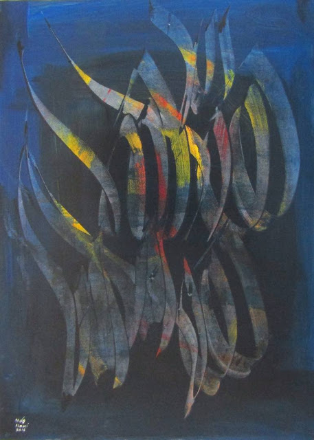 Mahdi Almasi, poet and painter, was born in west of Iran and grew up in the ancient city of Hamedan. Almasi has always been artistically inclined, even from an early age that he gravitated toward art and beauty and involved in almost every aspect of creative art – Persian calligraphy, design, photography, sculpture – before eventually discovering and landing on painting. Now, after years of continuous artistic work in painting and Persian calligraphy, he has reached a specific style in painting. In this style, the elegance of Oriental Art has been blended with the Modern Contemporary Art. He has experienced different periods in painting, and the capacities, symbols, rhythm, song and movement of Persian calligraphy have been used as part of his modern and abstract works. More on Mahdi Almasi