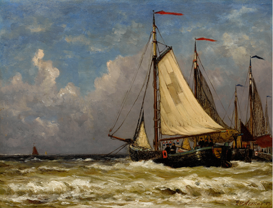 He studied in Brussels with Willem Roelofs and in 1868 moved to The Hague to paint the sea. In 1870 he exhibited at the Paris Salon and won the gold medal for The Breakers of the North Sea.