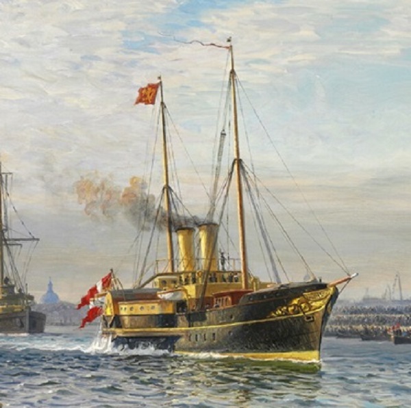 Detail, Prince Carl and Princess Maud of Denmark leaving Copenhagen for Oslo on the Royal Yacht as King Haakon VII and Queen Maud of Norway , 1905
