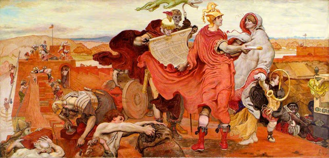 Ford Madox Brown (16 April 1821–6 October 1893) was a British painter of moral and historical subjects, notable for his distinctively graphic and often Hogarthian version of the Pre-Raphaelite style. Arguably, his most notable painting was Work (1852–1865) (See below). Brown spent the latter years of his life painting the twelve works known as The Manchester Murals, depicting Mancunian history, for Manchester Town Hall…