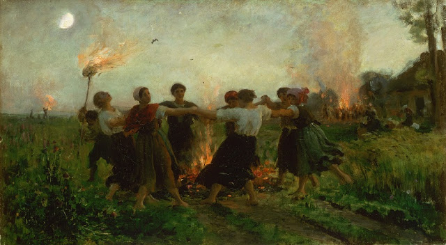 Since ancient times, peasants have celebrated the longest days of summer with festivities. This dance around a fire marks the feast of Saint John the Baptist on June 24, an important occasion in France.