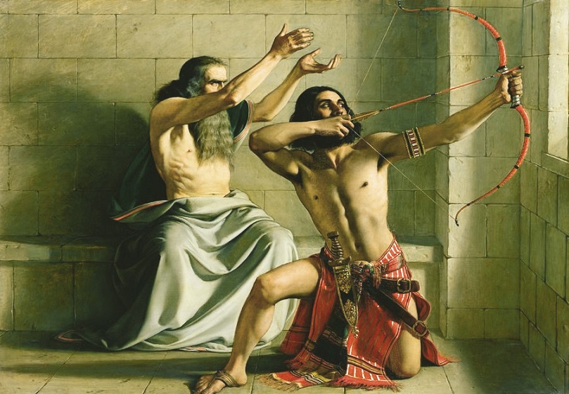 Elisha’s Final Prophecy: …16Then Elisha said to the king of Israel, “Put your hand on the bow.” So the king put his hand on the bow, and Elisha put his hands on the king’s hands. 17“Open the east window,” said Elisha. So he opened it and Elisha said, “Shoot!” So he shot. And Elisha declared: “This is the LORD’s arrow of victory, the arrow of victory over Aram, for you shall strike the Arameans in Aphek until you have put an end to them.” 18Then Elisha said, “Take the arrows!” So he took them, and Elisha said to the king of Israel, “Strike the ground!” So he struck the ground three times and stopped.… More on the Arrow of Deliverance