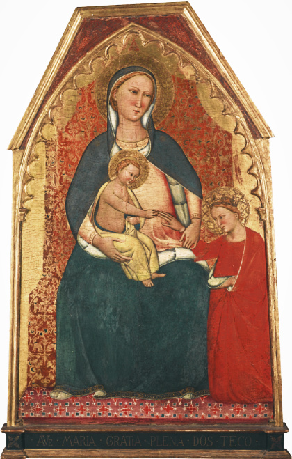 This imposing painting once formed the centrepiece of a polyptych dedicated to Saint Catherine. It preserves in part its original frame with cusped arch. The lateral compartments remain untraced.