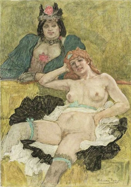 Félicien Victor Joseph Rops (7 July 1833–23 August 1898) was a Belgian artist associated with Symbolism and the Parisian Fin-de Siecle. He was a painter, illustrator, caricaturist and a prolific and innovative print maker, particularly in intaglio (etching and aquatint)…