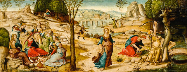 EURYDICE AND HER COMPANIONS: A CASSONE PANEL