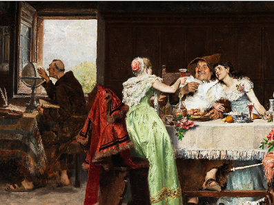 Tito Lessi (1858 – 1917) was born in Florence, then became a resident of Paris. He studied at the Florentine Academy of Fine Arts under Enrico Pollastrini and Antonio Ciseri.