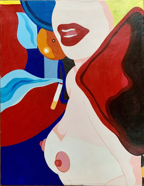 Wesselmann is highly regarded for his Great American Nude series (1961–73), which combines sensual depictions of the female figure with references to art history and popular culture. Many of these lounging female subjects were painted in patriotic red, white, and blue. In the late 1960s Wesselmann created close-up views of the nude in the Bedroom Paintings (1968–83). More on Tom Wesselmann