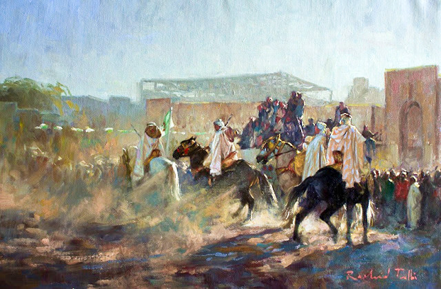 Rachid Talbi is a contemporary figurative painter who uses all techniques to express his art: oil, watercolor, acrylic, pastel, charcoal and pencil. From its bright and colorful touch flow scenes from everyday life, portraits, fantasias, marines, still lifes …