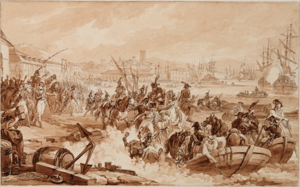 Rumors became rife as 40,000 soldiers and 10,000 sailors were gathered in French Mediterranean ports. A large fleet was assembled at Toulon: 13 ships of the line, 14 frigates, and 400 transports. To avoid interception by the British fleet under Nelson, the expedition’s target was kept secret. It was known only to Bonaparte himself, his generals…