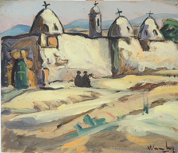Adham Wanly (1908 in Alexandria, Egypt – 1959) was a painter who learnt in the atelier of the Italian Otorino Becchi 1932, then set up his own atelier with his brother Seif Wanly (above), and participated in many local and international exhibition specially Venice, São Paulo (Brasil), Alexandria Biennale.