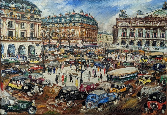 The Place de l’Opéra is a square in the 9th arrondissement of Paris, at the junction of boulevard des Italiens, boulevard des Capucines, avenue de l’Opéra, rue Auber, rue Halévy, rue de la Paix and rue du Quatre-Septembre. It was built at the same time as the Opéra Garnier (designed by Charles Garnier), which is sited on it and after which it is named. Both structures were part of the Haussmannian redesign of Paris under Napoleon III of France. More on The Place de l’OpéraLucien Génin (9 November 1894 in Rouen – 26 August 1953 in Paris) was a French painter in the milieu of pre-World War I, and 1920s Montmartre and Saint-Germain-des-Prés.