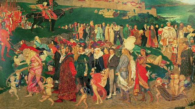 107 famous historical and literary figures are indicated and are represented in the painting, all belonging to the army of the Conqueror Love.