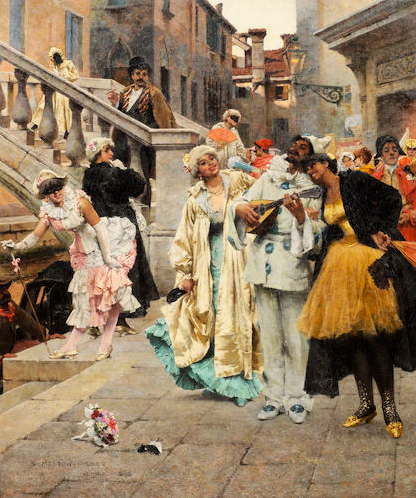 The painting capturs the vitality, colour and opulence of the Venice Carnival.