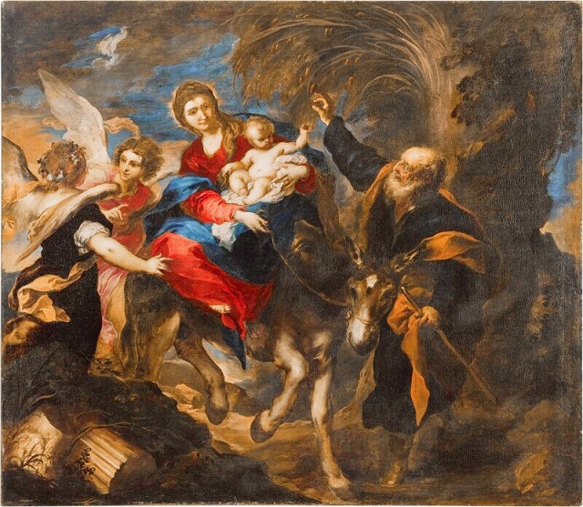 This large canvas, one of Valerio Castello’s most dramatic and emotive depictions of the Flight into Egypt, was painted while the Genoese artist was at the peak of his career. The deep color palette, energetic brushwork, and rhythmic movement used to depict the procession of the Holy Family and the gesticulating angels who follow them, display the increasing influence that the works of Peter Paul Rubens and Anthony Van Dyck exerted upon Castello during the last decade of his life. More on this painting