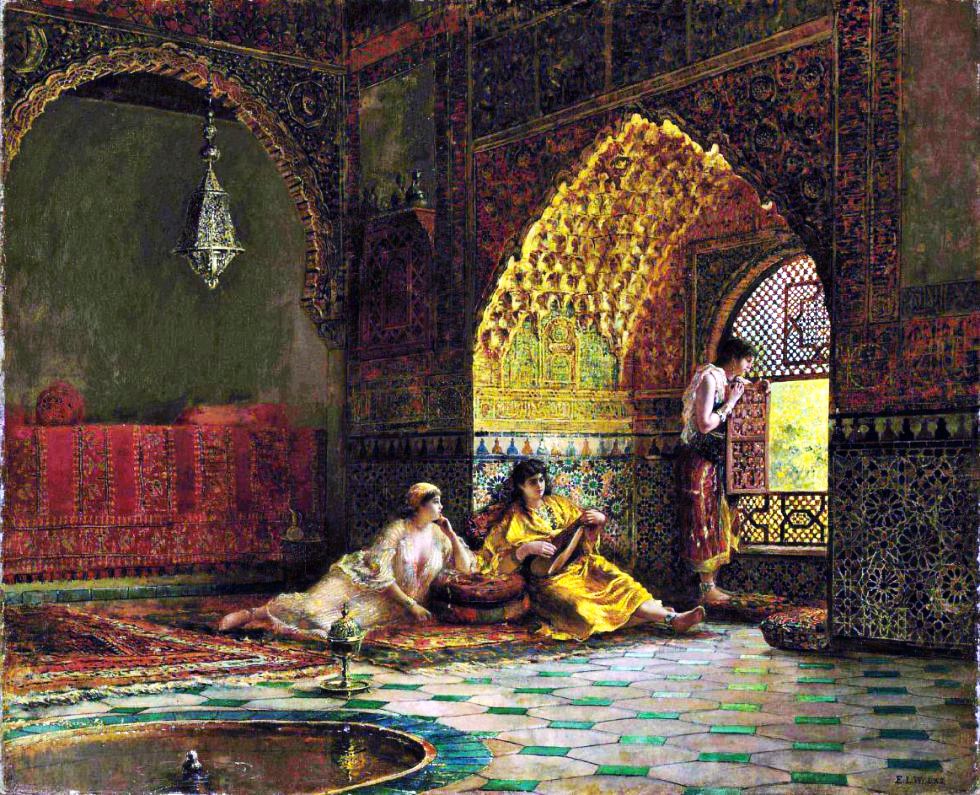 Edwin Lord Weeks (1849 – 1903) was an American artist. Weeks was born in Boston, Massachusetts in 1849. His parents were affluent spice and tea merchants from Newton, a suburb of Boston, and as such they were able to finance their son’s youthful interest in painting and travelling. As a young man Weeks visited the Florida Keys to draw, and also travelled to Surinam in South America. His earliest known paintings date from 1867 when he was eighteen years old, although it is not until his Landscape with Blue Heron, dated 1871 and painted in the Everglades, that Weeks started to exhibit a dexterity of technique and eye for composition—presumably having taken professional tuition.