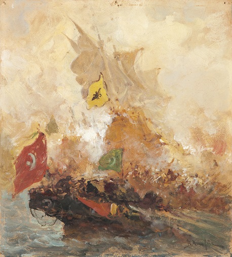 Vasileios Hatzis was born in 1870 in Kastoria. His family was involved in shipping, and he spent his childhood in Patras. From 1886 to 1893 he studied at the Athens School of Fine Arts . During the Balkan Wars of 1912–13 the government assigned him to the navy, where he portrayed action scenes of the Greek fleet. He died in Athens in 1915