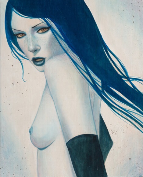 Using simple materials, she explores the female beauty, sexuality, and the tattooed subjects denote both a frightful look and certain fragility behind the mask, depicting a fearful beauty placed in an exotic, timeless reality. With each painting being spiritual and enigmatic, a nuance of the artist can be seen regardless of whom the piece actually depicts, as her desire to surprise is easily transferred to the canvas.