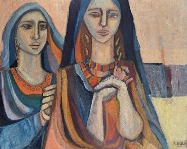 Abdi worked as a blacksmith and illustrated Arabic publications that appeared in Israel. After studying in Dresden, Abdi became the first Palestinian to build monumental art on native soil. His allegorical monuments in Galilee, honoring human fortitude and resistance, include a narrative mural depicting Elijah’s defiance and survival and a bronze Land Day memorial.