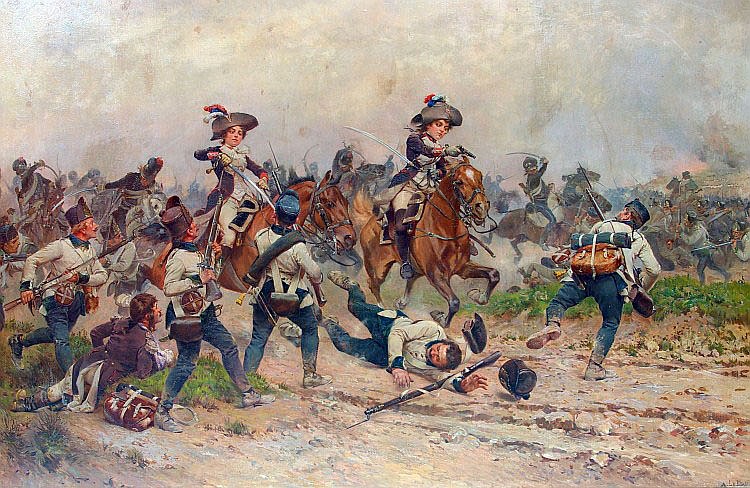 The sisters and their father then joined General Dumouriez’s troops. At the battle of Jemappes, on November 6 1792, Théophile shot 2 Hungarian grenadiers and took prisoner their commanding officer. Meanwhile, Félicité was “in the thickest of the mélée”, rallied Dumouriez’s retreating battalions, charging on the battlefield “holding her bridle in her teeth and with a pistol in each hand”.