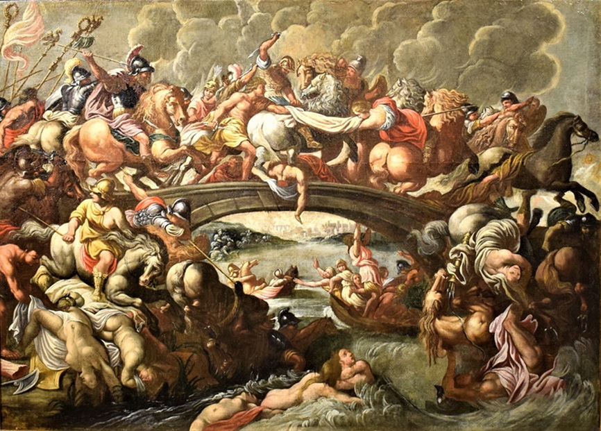 The tangle of naked bodies, some mutilated, gives the idea of the extreme violence used in battle and the terrified expressions of the horses are of rare intensity. Their anguished gazes are the most exciting moment of the spectacular composition. The author of this great work demonstrates all his pictorial abilities by giving a great sensation of movement and volume to all the protagonists. More on this painting