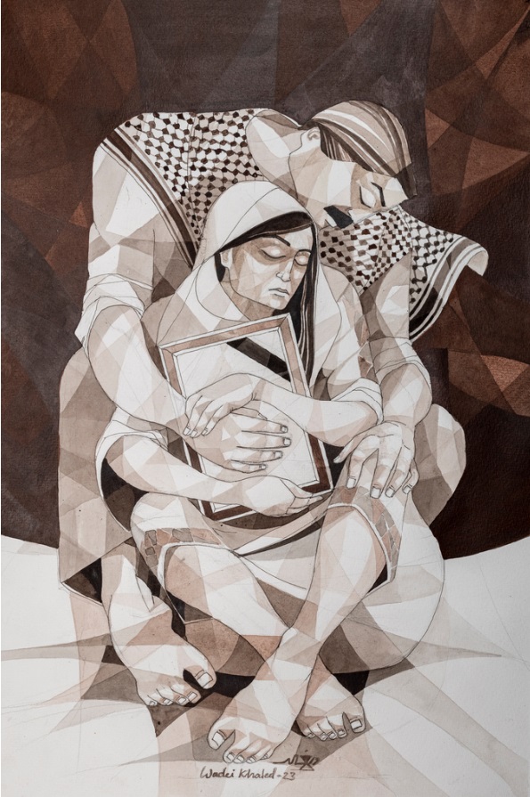 Impressionists were among Wadei’s main inspirations in art school. Like them, he enjoys playing with light, colors, and shadows. Hs passion as an artist is driven by his strong connection with the landscape. In his various works, he reflects on the Palestinian landscape, its zigzag details, and the olive trees that for centuries have not only provided livelihoods for many Palestinians but also inspired numerous traditional and popular stories. More on More on Wadei Khaled