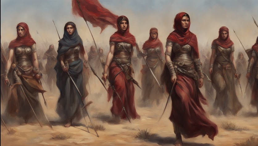 In the midst of a rugged field, where grains of sand mingle with tufts of grass, Alma and her troop of Bedouin women stand tall. Clad in ornate, oriental armor, each woman exudes a sense of power and resilience…