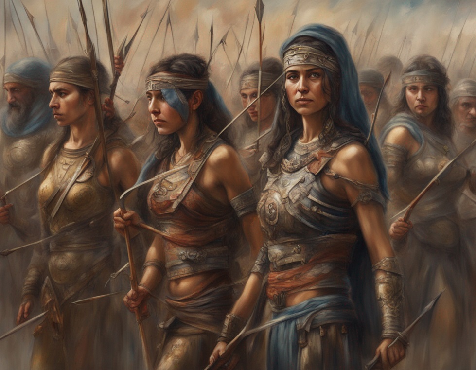 The painting captures the essence of strength, grace, and defiance as these fierce Bedouin warrior women fight valiantly for their homeland…