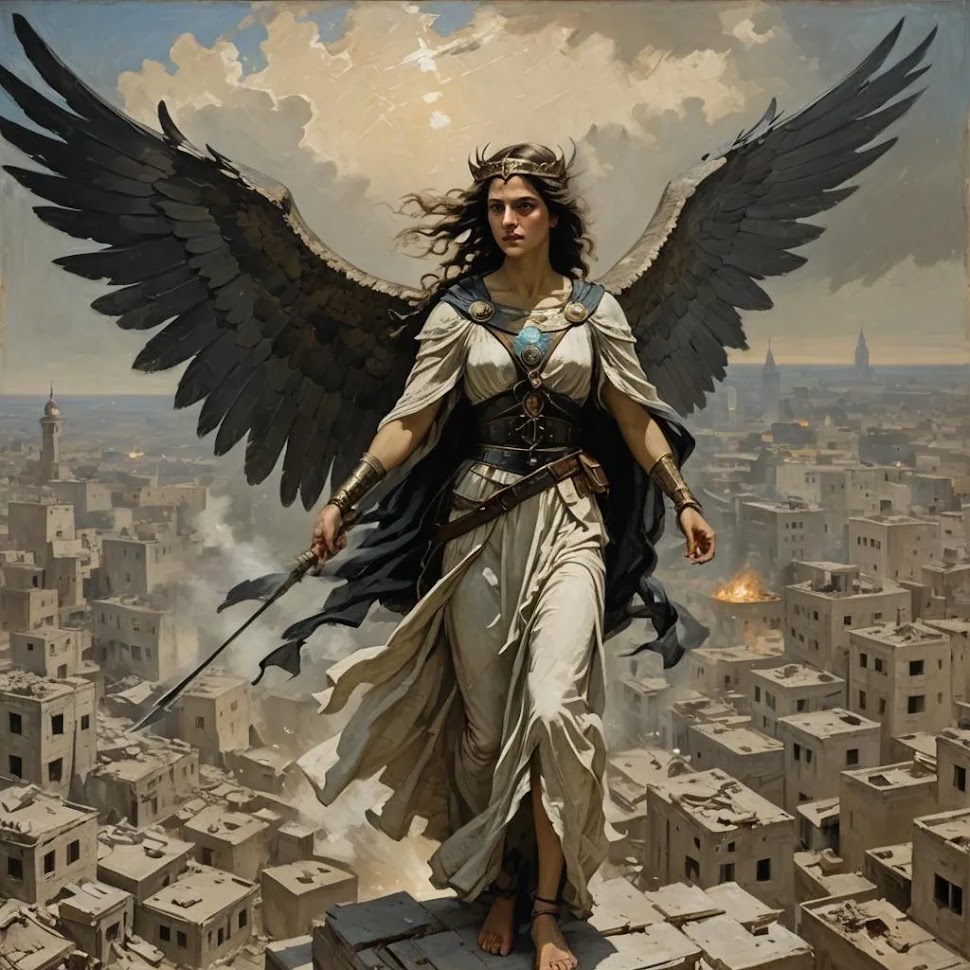 As the Valkyrie descended upon the grief-stricken land, her radiant presence brought a glimmer of hope amidst the despair. With her wings outstretched, she soared above the ruins, her eyes piercing through the smoke and rubble. Every cry for help echoed within her, fueling her determination to bring solace and aid to those in need…