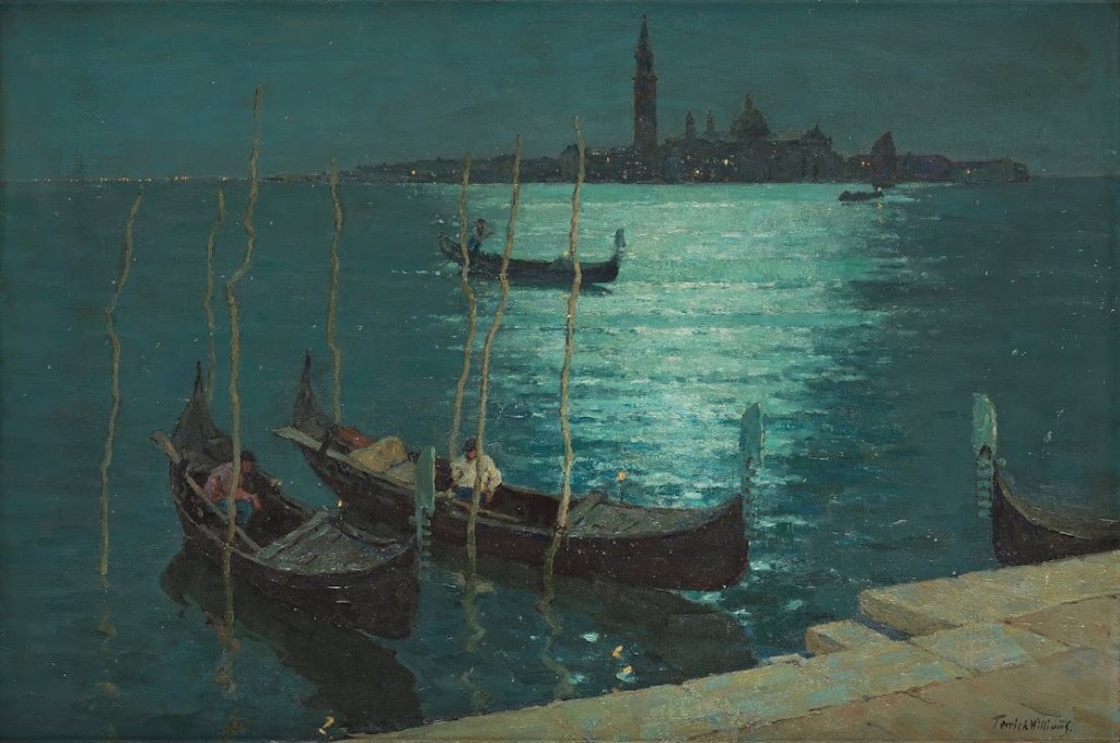 Williams focussed on landscape and marine subjects and painted in oil, pastel and watercolour. He travelled extensively and his impressionistic, luminous paintings sought the transient effects of light and reflections in Venice, St. Tropez, Paris, Brittany and St. Ives.